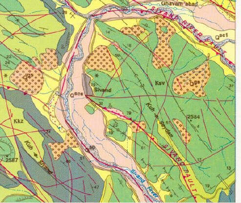 نقشه گسلهای دشت سیوند شامل گسلهای اصلی ، فرعی