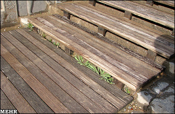ایجاد لایه چوبی بر روی راه پله های ورودی و دیگر مسیرهای عبور تخت جمشید برای محافظت از سنگهای بنا در مقابل فرسایش بود