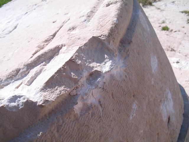براساس بازدید میدانی و عکسهای موجود که به پیوست ارسال گردیده، آثار شکستگی و ترک غیر عادی که توسط فرد یا افرادی در بدنۀ پایه ستونهای این محوطه بوجود آمده کاملا مشهود است که بیانگر عدم وجود حفاظ کافی و نگهبان در قسمت انتهایی محوطه میباشد. با توجه به باستانی بودن و ارزش پژوهشی منطقۀ فوق لازم است توجه بیشتری به این موضوع مبذول گردد.