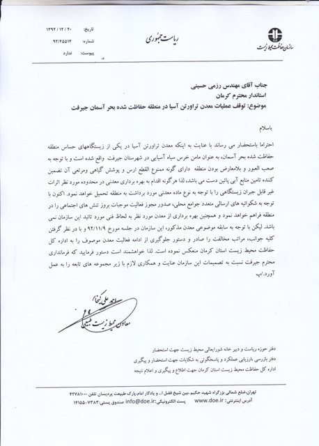 اما این گروهها ماندهاند... برای ما روشن نیست که این متجاوزان پشتشان به کجا گرم است و چرا برخی مسؤولان دولتی چنین آشکار از آنها و تخریب تنها منطقهی حفاظتشدهی جنوب کرمان حمایت میکنند. تخریب منطقهای با پنچ رودخانهی دائمی و سرچشمههای آب در استانی که دچار بحرانیترین وضعیت آب در کشور ــ آنهم در این وانفسای خشکسالی ــ است برای همهی اهالی و دوستداران محیط زیست تعجبآور است. حرص و آز این گروههای سودجو و از آن مهمتر حمایتهای برخی مقامهای دولتی مایهی شگفتی و تأسف است.