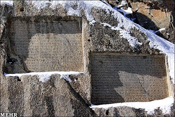 کتیبه های گنجنامه بر دل یکی از صخره های کوه الوند حکاکی شده است