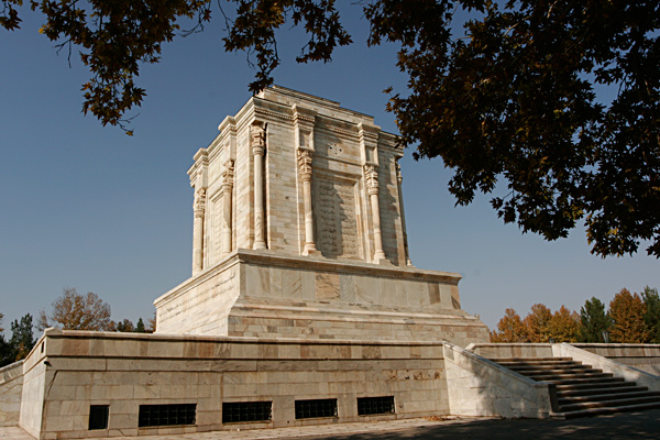 در این طرح سعی شد بنایی شبیه به آرامگاه کورش هخامنشی ارائه شود. بنایی به شکل مکعب که در قسمت بالا فرم پلکانی داشت و دیوارهای خارجی آن با نگارش بخشهایی از شاهنامه مزیّن شده بود. علاوه بر بنای آرامگاه، ساختمان وسیعی نیز در باغ و در بخش زیرین آرامگاه طراحی شد که دیوارهایش را با نقش تصاویری از روایتهای شاهنامه حجاری کردند.