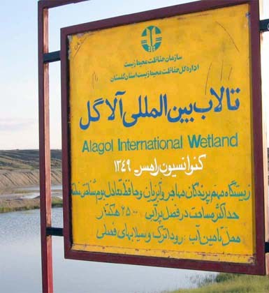 تالاب آلاگل در شرق جاده آققلا به اینچهبرون در مرکز شورهزار بزرگ ترکمنصحرا و چند کیلومتری مرز ترکمنستان واقع شده و یک دریاچه آب شور است. به همین دلیل پرورش ماهیان آب شورزی دریای خزر به ویژه ماهی سفید و کپور در این تالاب رونق زیادی دارد. هر ساله در فصل مهاجرت هزاران پرنده از انواع قو، فلامینگو، اردک، پرستوی دریایی، آبچلیک و باتلان به این تالاب میآیند.