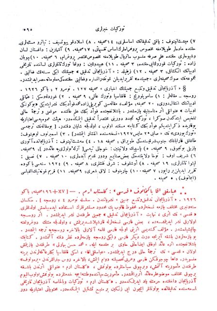 بررسی کتاب «گلستان ارم»، به قلم محمدفؤاد کوپرولوزاده، در شماره دوم نشریۀ «تورکییات مجموعهسی»، استانبول، 1926