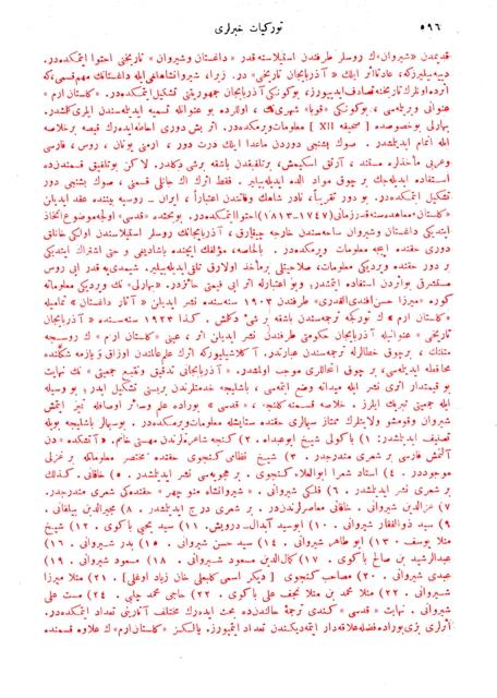 پژوهشگر نامی ترک، محمدفؤاد کوپرولوزاده، در شمارهٔ دوم نشریهٔ «تورکییات مجموعه» چاپ استانبول 1926، در بخش معرفی و نقد کتاب آن نشریه، این کتاب روسی را بررسی نموده و مطالبی دربارهٔ آن نگاشته است که قسمتی از آن نوشته، ترجمه و نقل میشود: