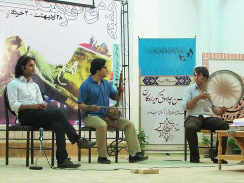 جناب آقای جوادیان مدیرکل امور اجتماعی استانداری یزد آخرین سخنران این مراسم بود که در سخنان خود از انجمن چارسوق کویر به عنوان یکی از فعال ترین سمنهای استان یاد کرد و ضمن تقدیر از اعضاء این انجمن خواستار معرفی هرچه بیشتر این فعالیت های به سایرین شد. جوادیان خاطر نشان کرد: توسعه ی صرفا صنعتی به بن بست رسیده و توسعه ی بر محور فرهنگ و ارزش های یک جامعه همان توسعه ی مشارکتی-میراثی است که مبتنی بر میراث مادی و معنوی گذشتگان است و باید بیشتر بدان توجه شود. اجرای موسیقی سنتی توسط گروه باربد از دیگر بخشهای برنامه بود که مورد توجه حضار قرار گرفت و حال و هوای مراسم را دگرگون نمود.