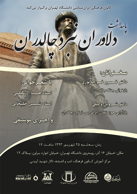 کانون فرهنگی ایرانشناسی دانشگاه تهران همایش پاسداشت دلاوران نبرد چالدران را در روز سهشنبه 25 شهریورماه 1393 از ساعت 17 برگزار میکند.