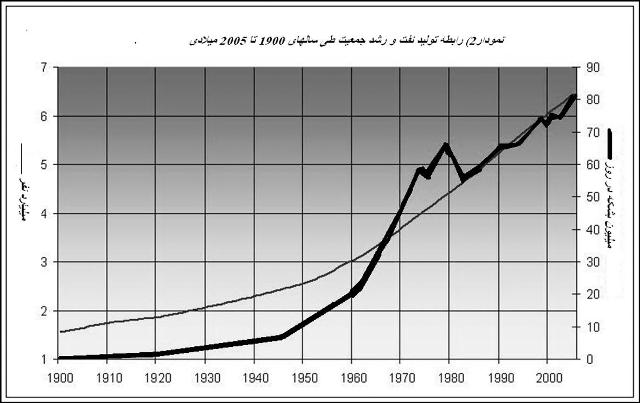 همانطور که ملاحظه میشود نرخ رشد جمعیت به صورتنمایی افزایش مییابد. در نگاه اول دلیل افزایش نرخ جمعیت را باید در کاهش نرخ مرگ و میر جستوجو کرد. در واقع صنعتی شدن، بهبود کشاورزی، توسعه بهداشت و تولید داروها از جمله عواملی است که در کاهش نرخ مرگ و میر تاثیر بهسزایی داشته است. با اینهمه در هر کدام از موارد فوق نفت به عنوان منبع اصلی انرژی نقش بسیار مهمی ایفا کرده است.