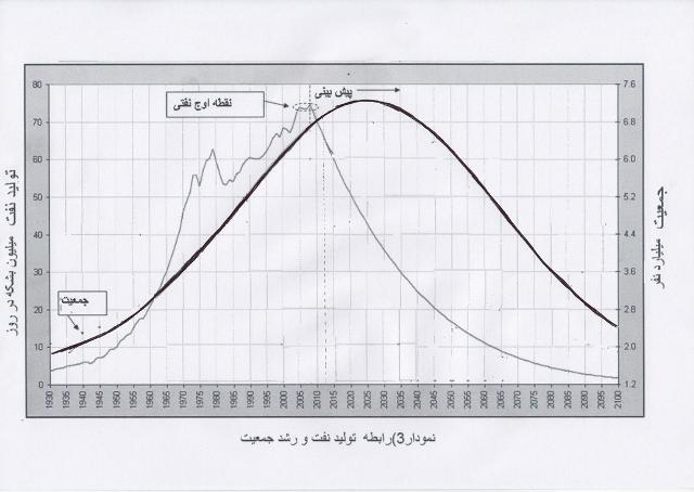 از گفتار فوق میتوان به ارتباط تنگاتنگ انرژی نفت با رشد جمعیت پی برد. طبق تئوری اوج نفتی، تولید نفت در جهان طی دهه اخیر سیری نزولی خواهد داشت در حالی که جمعیت با نرخ رشدنمایی روبه افزایش است. با توجه به اینکه سیر تولید نفت و مصرف انرژی با رشد جمعیت هماهنگ است، انتظار میرود تا طی سالهای 2050-2030 جمعیت جهان با توجه به کاهش تولید نفت به سمت سطح پایدار قدیمی خود یعنی 1 میلیارد نفر میل خواهد نمود که این واقعیتی دهشتناک را برای آینده بشر رقم خواهد زد.