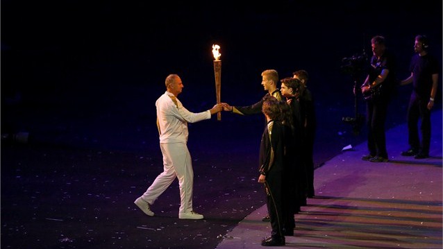 به گزارش «تابناک» و به نقل از «بی بی سی» ، این مشعل از بیشتر از دویست گلبرگ مسی تشکیل شده بود که به وسیله هفت ورزشکار جوان روشن شد. سپس ساقه های گلبرگ ها بلند شدند تا به نشانه همه ملل با هم متحد شوند و مشعل بازی ها را به وجود بیاورند.