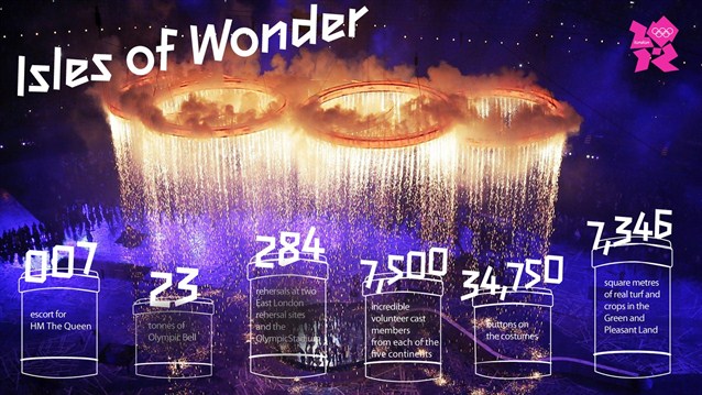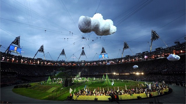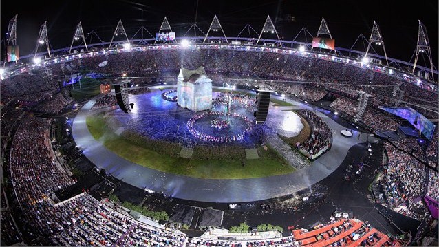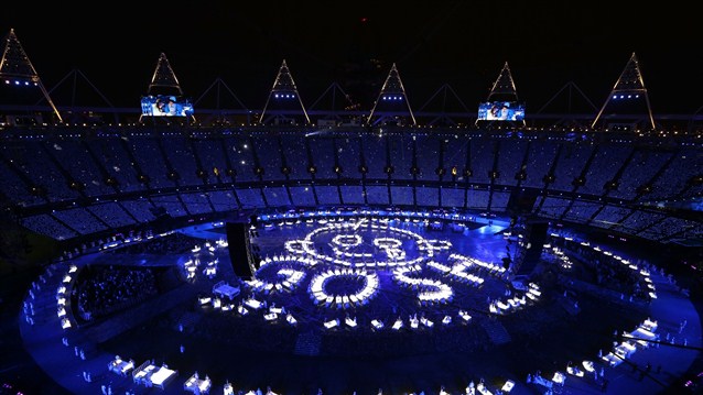کارگردانی مراسم افتتاحیه بر عهده دنی بویل، کارگردان فیلم میلیونر زاغه نشین بود و ۱۵ هزار داوطلب اجرای مراسم را برعهده دارشتند.
