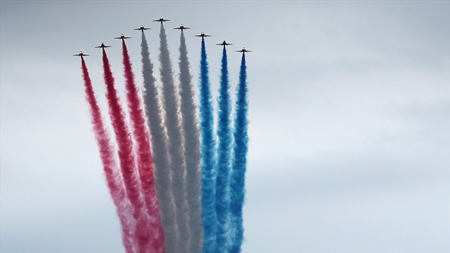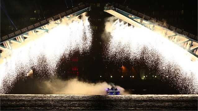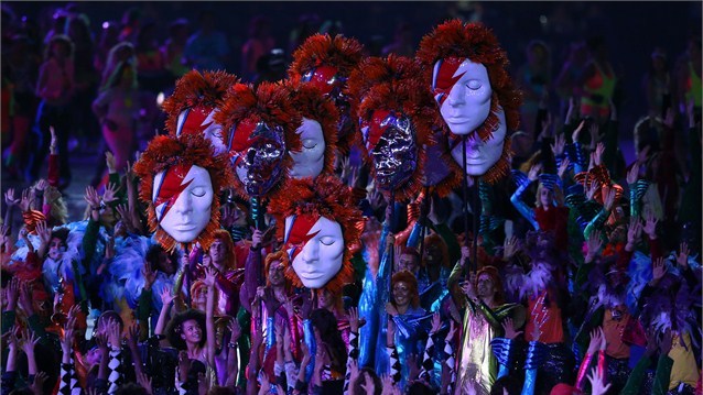 در ابتدای مراسم بازیگران به طور نمادین صحنه هایی از زندگی تاریخی مردم بریتانیا از جمله دوران انقلاب صنعتی و تحولات فرهنگی-اجتماعی دهه ۱۹۶۰ میلادی را به نمایش گذاشتند.