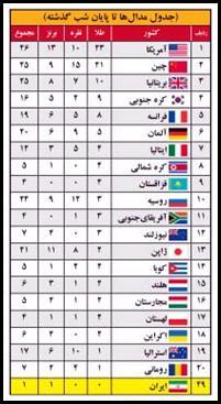 پایان یک هفته صدرنشینی چین ورود ایران به جدول توزیع مدالها
