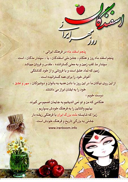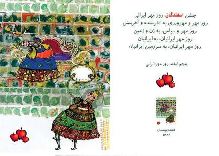 به مناسبت جشن ملی اسفندگان روز مهر ایرانی، تارنمای ایرانبوم اقدام به چاپ بیست هزار برگه شادباش نموده است. هدف تارنمای یاد شده پاسداشت آیینهای ایرانی و جلوگیری از اشاعه فرهنگ غربی است. امید است در این راه کامیاب باشد. کسانی که تمایل دارند در پاسداشت آیینهای ایرانی یاریرسان باشند و یا مجزا این برگهها را به چاپ برسانند، یک رایانامه به ایرانبوم ارسال نمایند.