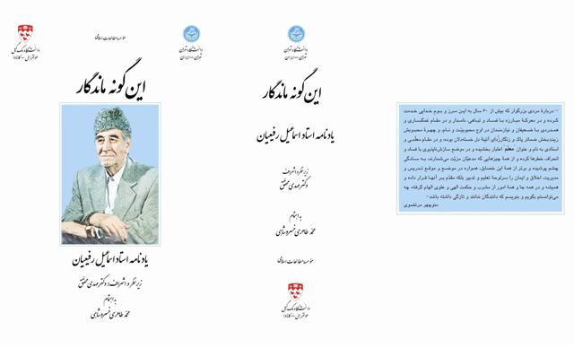 یادنامه دکتر اسماعیل رفیعیان،استاد پیشین دانشکده ادبیات دانشگاه تبریز با عنوان «اینگونه ماندگار» تدوین شد.