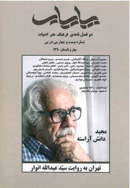 شماره بیست و چهارم دوفصلنامه پایاب که تصویر مجید دانش آراسته، داستان نویس معاصر بر روی جلد آن دیده میشود، در یازده بخش تدوین شده است: