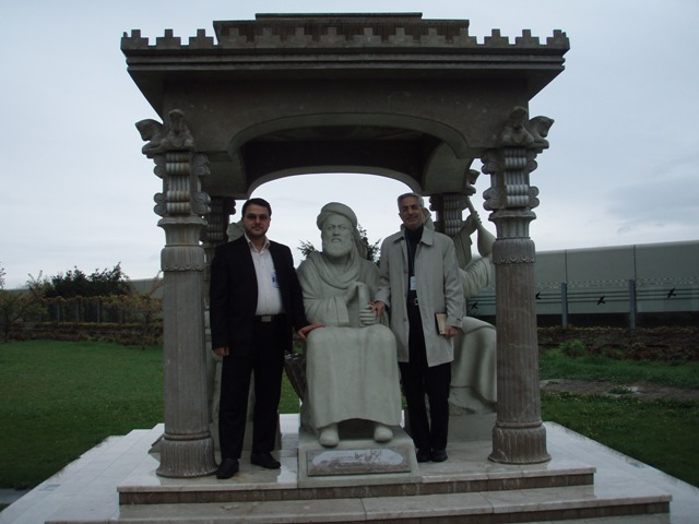 در بنای شکوهمند «کوشک نخبگان» خیام نیشابوری، ابوریحان بیرونی، زکریای رازی و ابوعلی سینا که در تولید دانش در سطح جهانی اثرگذار بودهاند به گونه تندیسهای چهارگانه سنگی در ابعاد بزرگ به نمایش گذاشته شده و با لوح زرینی، این اندیشمندان مشهور جهانی را به عنوان مفاخری ایرانی به نمایندگان کشورهای عضو سازمان ملل متحد و دیگر بازدیدکنندگان، معرفی نموده است.