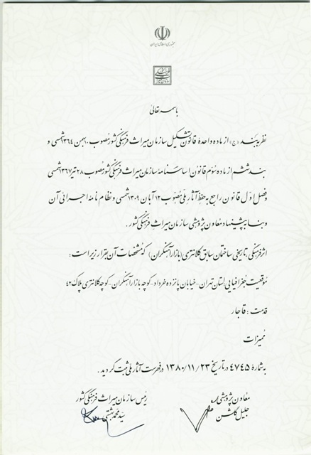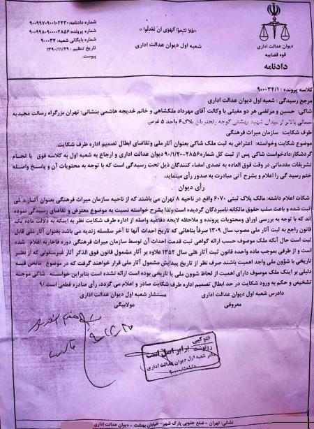 گفتنی است نخستین کلانتری تهران واقع در بازار آهنگران، کوچه کلانتری، پلاک 42 در تاریخ 17 اسفند 1390 طبق حکمی از سوی دیوان عدالت اداری، از فهرست آثار ملی کشور خارج شد.