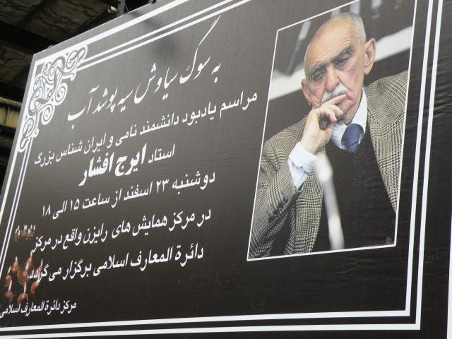 مجلس بزرگداشت استاد ایرج افشار روز یکشنبه 22 اسفند ساعت 17 در مسجد نور واقع در میدان فاطمی برگزار میشود.