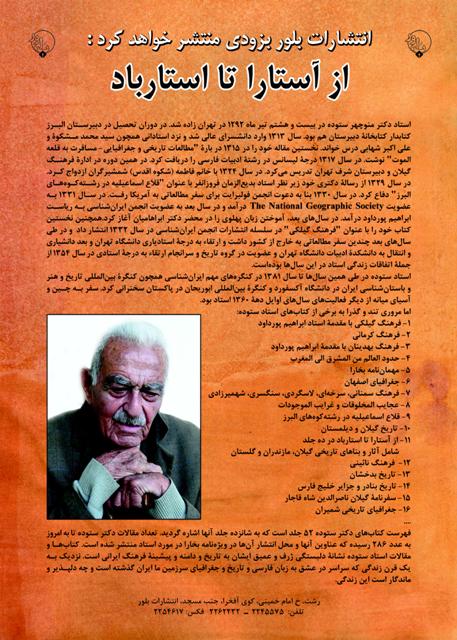 بهتازگی انتشارات بلور کتابِ ارزنده و پژوهشی «از آستارا تا استارباد 10 +1 جلد» نوشتهٔ سرو کهنسال ایران دکتر منوچهر ستوده را آماده چاپ و نشر کرده است. کتاب «از آستارا تا استارباد» به کوشش محمدرضا توسلی به زیور طبع آراسته شده است. نبود این کتاب، برای جامعهٔ فرهنگی ایران و پژوهندگان جوان و سختکوش احساس میشد.